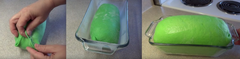 5. Одну часть оставшегося теста сделай зеленой, другую оставь белой. Также отложи тесто в тепло — на 2 часа.