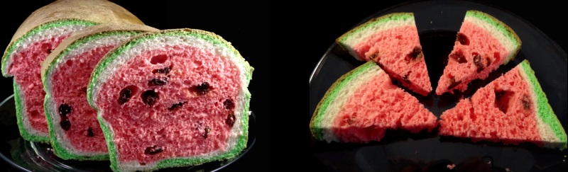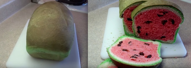 Хлеб, похожий на арбуз, — это нечто удивительное… Меня смутило то, что в рецепте используются пищевые красители, но если купить качественные, безопасные для здоровья, то эту идею хочется тут же начать воплощать в жизнь.